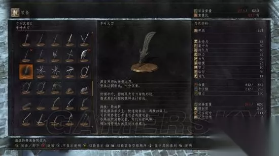 半叶大刀 真想吼一句食我青龙偃月刀!这家伙的战技是原地大风车,精力不空的话可以一直转下去! 刚进DLC的隆道尔老婆婆卖的