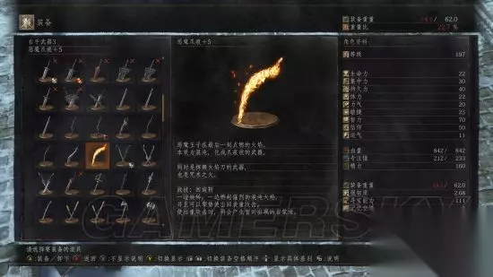 恶魔爪痕 恶魔之子魂器,换完了我才知道这厮换的咒术是bug大杀器 这是把奇怪的短刀,没有实体,就是一道火,伤害也全是火伤没有物理,战技二段可以打出一小块岩浆地,不能施法但是有法术加成