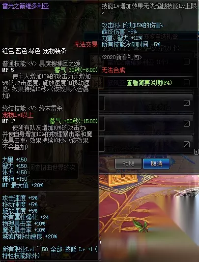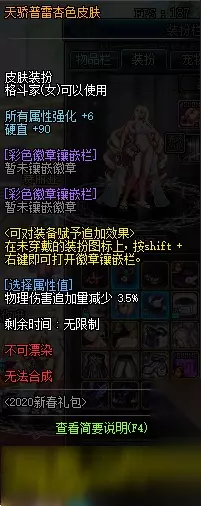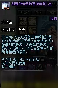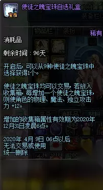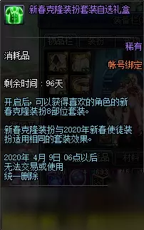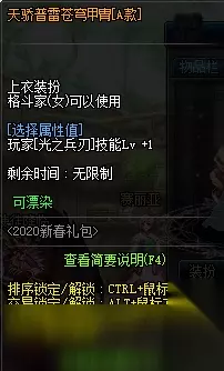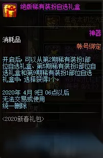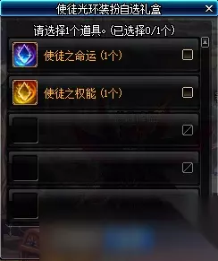 【新春使徒装扮套装自选礼盒】 礼盒可交易,无限制交易次数。 下装可选择20力智体精之一,皮肤6点属强,上衣无属强。