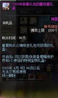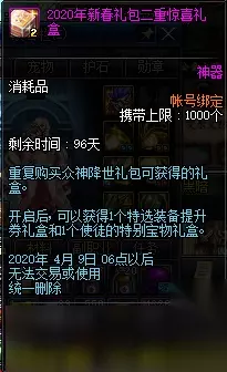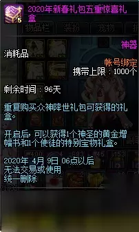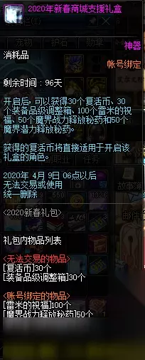 以上就是2020DNF1.14众神降世礼包内容一览的全部内容,399的礼包大家觉得怎么样呢?东西还是真的丰富,伟大的意志还可以换取很多奖励,今年DNF1.14的春节礼包勇士们准备买多少套呢? DNF2020活动 欲望之塔