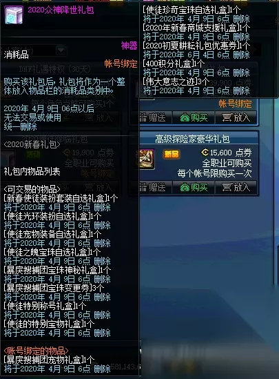【众神降世礼包 霸气登场!】 商城限时上架【2020众神降世礼包】与【2020使徒降临礼包】