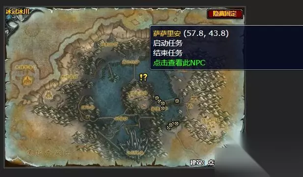 破天号上的萨萨里安要你转至莫德雷萨,从起脓的血肉巨人身上取回5根起脓的脊骨给他。 此任务完整发生于冰冠冰川。 联盟任务接取NPC:萨萨里安 萨萨里安位置图: