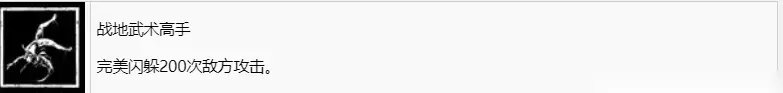 战地武术高手 完美闪躲200次敌方攻击 我们可以在生存技能树中解锁完美闪躲,且在技能树可以强化反应,这样能够增加触发完美闪避的时间窗口,除此之外还可以在11号矩阵中找到本能反应型辅助脊椎,进一步增加完美闪避的时间窗口。最后还可以将难度设置为剧情模式,获得行动辅助,增加闪避成功率。
