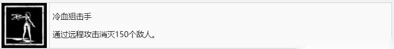 冷血狙击手 通过远程攻击消灭150个敌人。