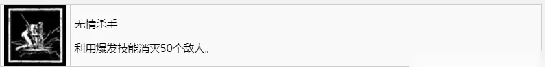 无情杀手 利用爆发技能消灭50个敌人。