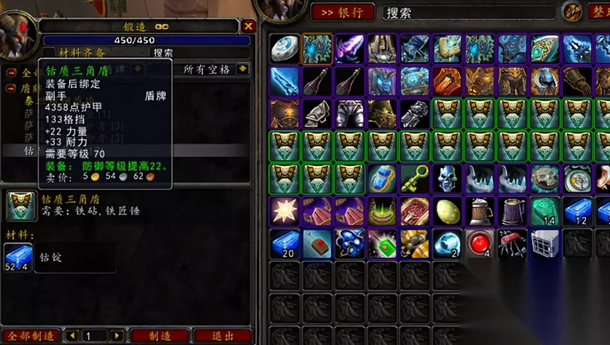 WLK的锻造专业也可以通过低价收购物资,然后制造物品卖店或者分解获得收益,类似TBC年代收精金矿制作精金,然后卖商店或者分解成强效位面卖金是一个道理,80级锻造只需要四个钴质锭就可一直做一个绿色盾牌,卖给商店都能卖5.5金,也就是说每个钴锭至少值1.38金,当年地精商把低于这个均价的钴锭通通收来,然而无限制作钴质三角盾卖商店,从而赚得盆满钵满。