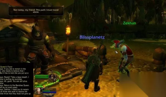 41. 回到奥格瑞玛,向女王复命。女王吐槽黑暗游侠莱安娜自上个任务后就是失联了。
