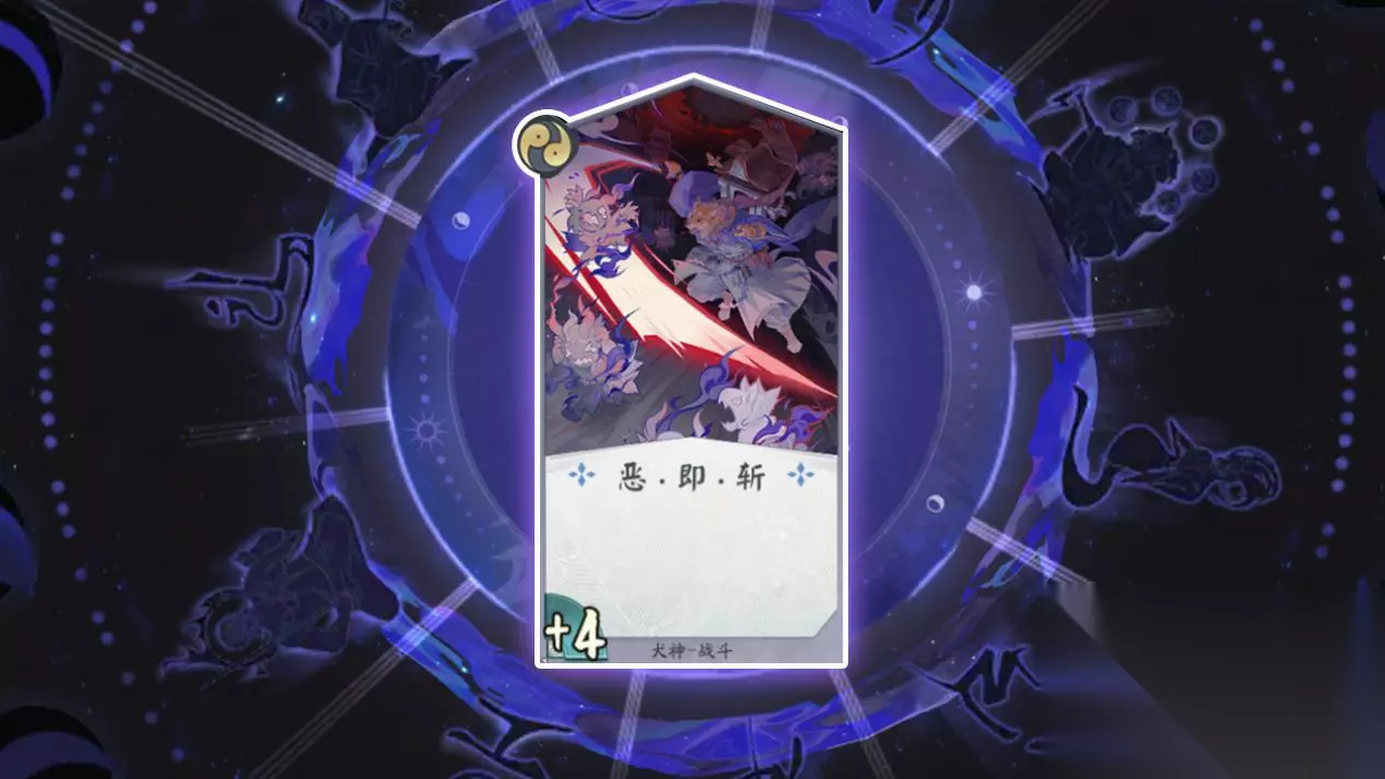 卡牌名称:恶.即.斩 卡牌等级:二级(战斗牌) 卡牌效果:此次出击时犬神额外增加4点力量 卡牌作用:犬神的主要输出卡牌,使用时额外获得4点力量加持,增加了犬神的输出能力,无论在中期压制,还是后期用于斩杀都是一个不错的选择。
