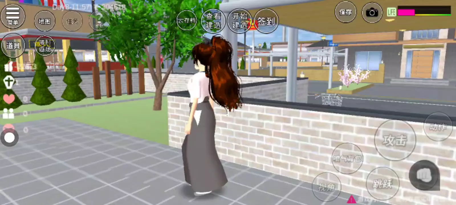 首先换成忍者服 ,然后上到游乐园里,坐摩天轮。再打开分身,这是你会不知道分身在哪里。这是你传送到校门口,就会发现有一个细长又巨大的分身