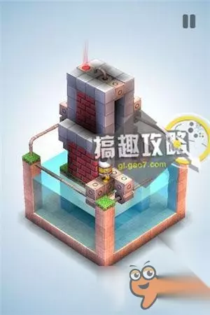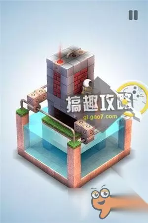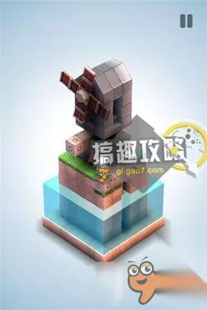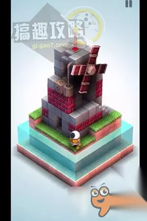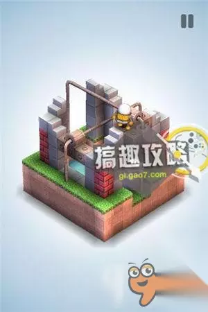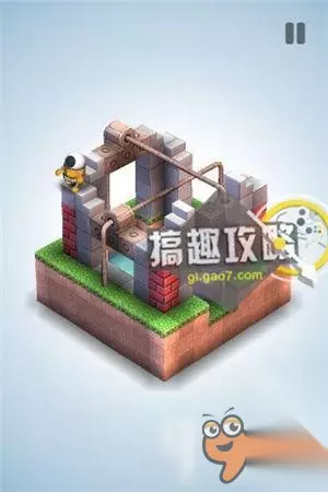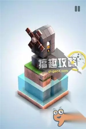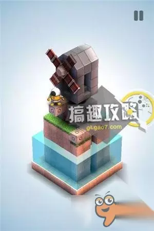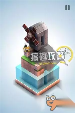 再将草坪上的机关,升到最高把风车抵住。翻转视角就可以直接点击终点到达了。 机械迷宫第34关攻略