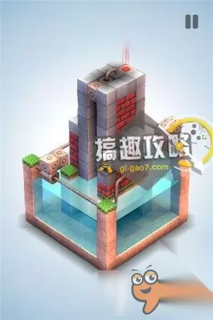 再将草坪上的机关,升到最高把风车抵住。翻转视角就可以直接点击终点到达了。 机械迷宫第33关攻略