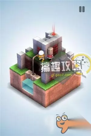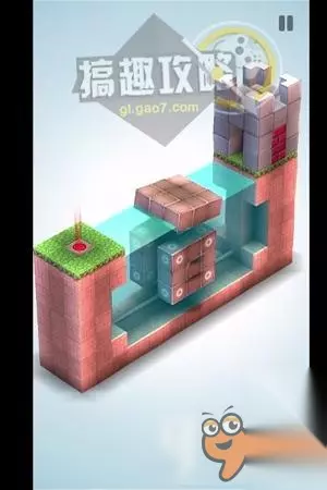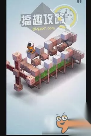 翻转视角,站在下面位置,即可到达它的头顶,等它运动到另一边,即可到达终点。 机械迷宫第32关攻略