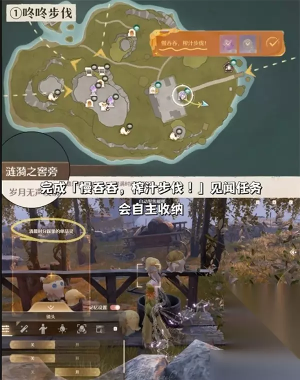 无限暖暖丰收季相册任务完成指南 前四张照片会在主线剧情中自动解锁,跟随任务流程即可完成。剩余任务需要手动触发或完成特定支线。 一、 呜呜步伐 1、完成见闻任务【慢吞吞,榨汁步伐!】 2、剧情触发后拍照,系统将自动收录。