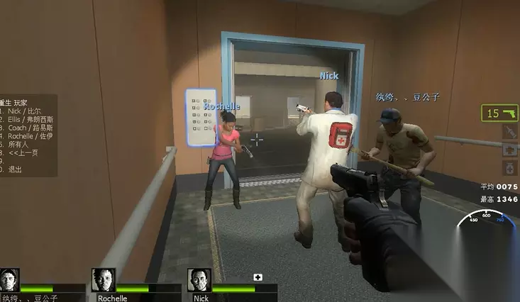 电梯是通往下一区域的核心路径,所有队员进入后需及时触发开关。电梯下降过程中会因故障停滞,要快速按E键打开舱门。门外火场环境复杂,需立即拾取地面长枪并沿右侧安全路线移动,注意分辨真实火焰与僵尸身上的燃烧效果。大厅作为最后撤离点,必须清剿全部僵尸才能进入正对面的安全门,团队协作在此阶段尤为重要。