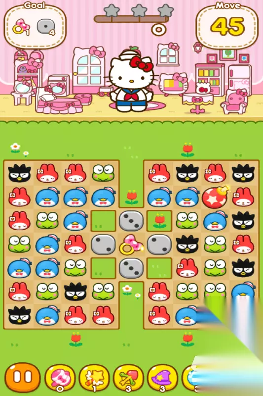 一个以Hello Kitty和其他三丽鸥角色为主角的休闲消除类手机游戏,游戏没有采用三消,而是改成双消机制,只要两个相同方块就能消除,也可以是斜着消,关卡中也会有火箭、炸弹等特殊方块帮助玩家通关。除了凯蒂猫,游戏还加入了美乐蒂、酷洛米等角色,每个角色都有一个技能,玩家通关获得金币也可以用来装饰家园或者给角色更换皮肤。 手机扫码下载233乐园APP预约 预约订阅最新动态 优先233乐园APP下载 2、《HelloKitty美食小镇》