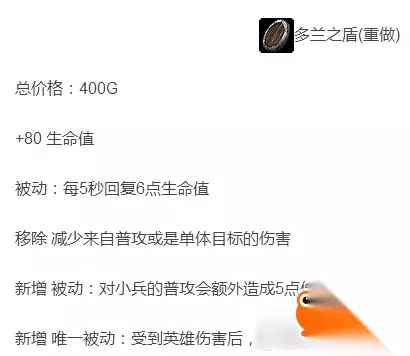 LOL多兰之盾bug介绍 在商店预览多兰盾属性还是正确的,买完后在物品栏里面再看就变成了只有+80生命值的属性 目前已经确定了是bug,这个只能等官方更新修复了! 小伙伴们可以在训练模式里面测试下属性效果还存不存在!如果回血等效果还有的话就不影响出门多兰盾的出装了! 看了上边这篇《LOL》2017年多兰盾bug解决方法,各位玩家是否都了解相关信息了呢!找精彩好玩手机游戏请浏览233乐园。 如转载涉及版权等问题,请作者与我司联系,我司将在第一时间删除或支付稿酬。