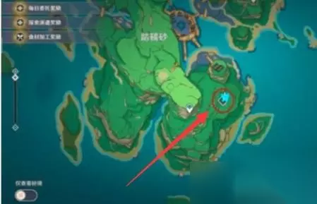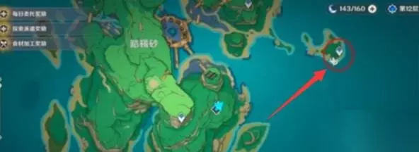 二、踏鞴砂墨镜解锁方法 1、首先打开地图点击,踏鞴砂右边的小岛中;