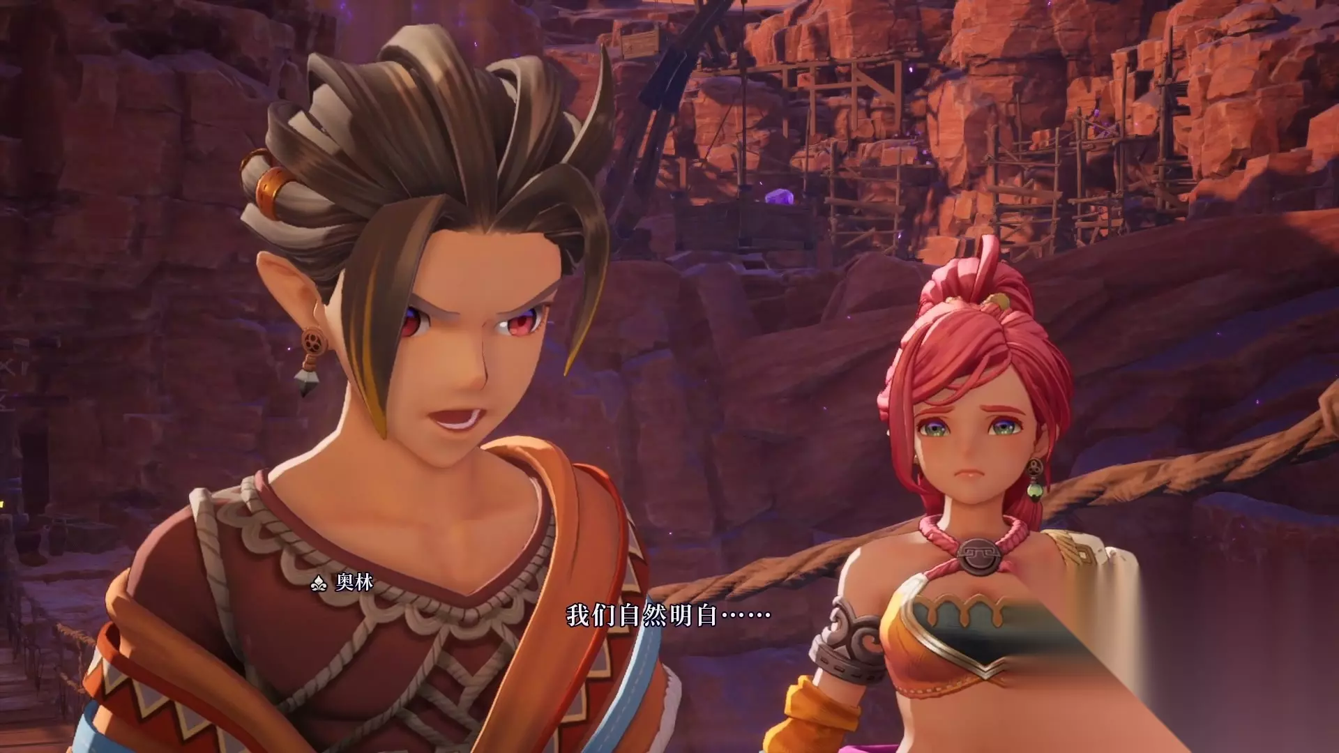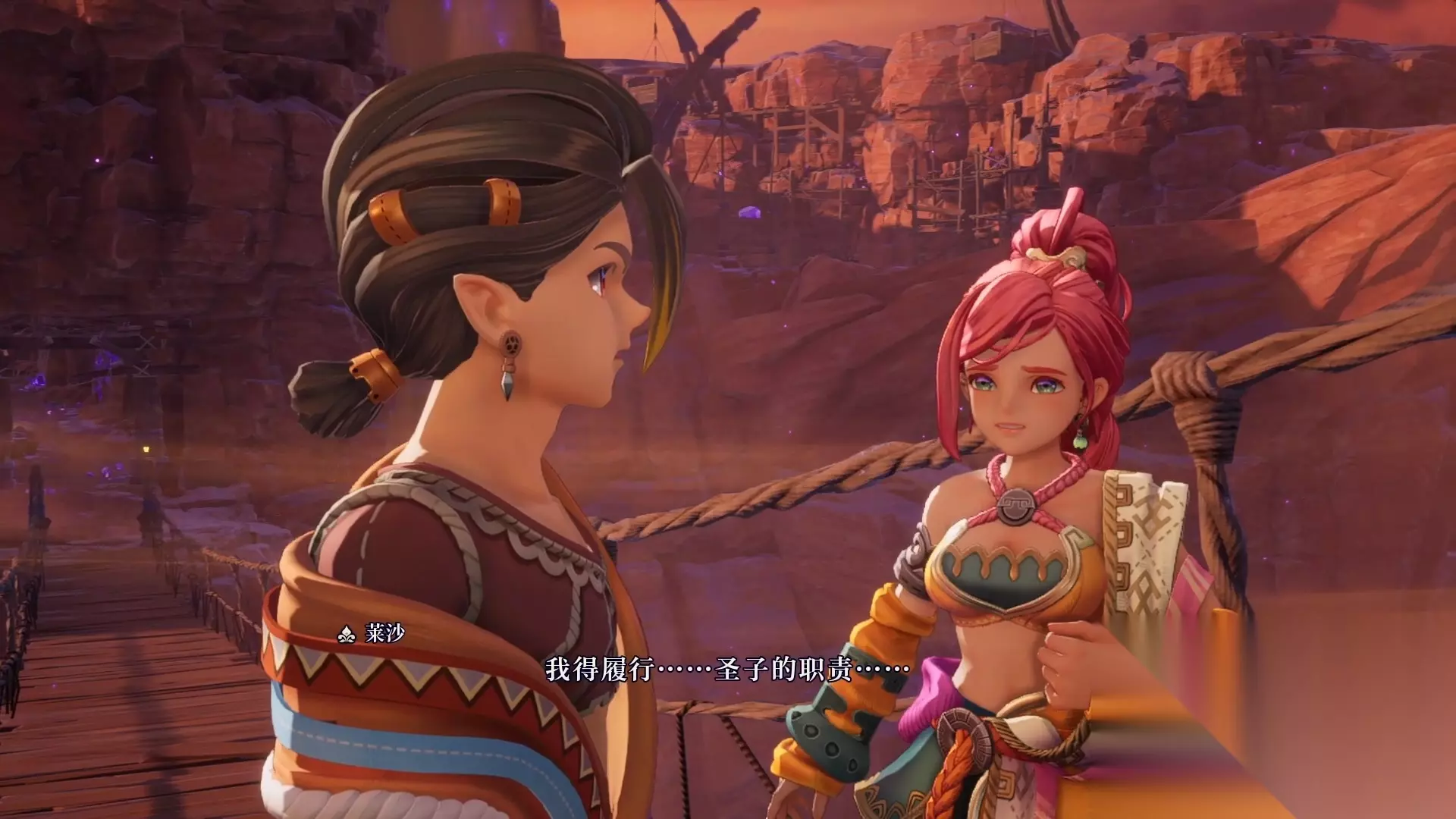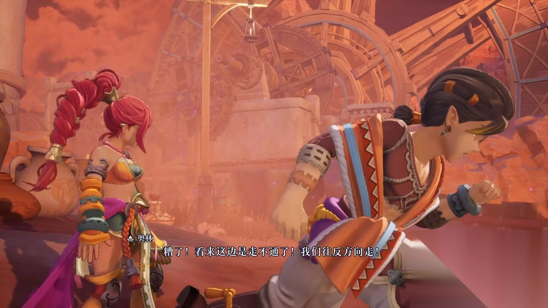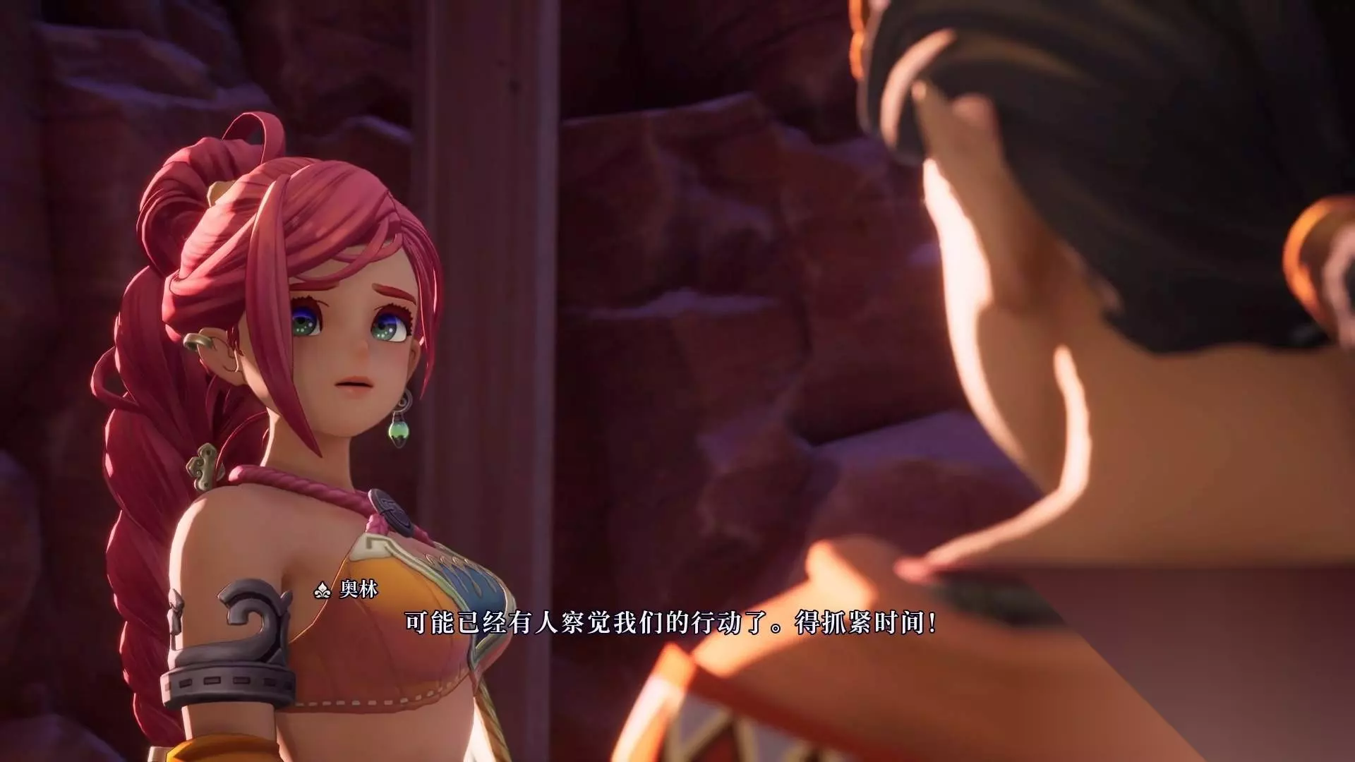 接下来画面给到序章的主角,奥林和莱莎,他们准备一起逃离村子,莱莎显得略微犹豫。