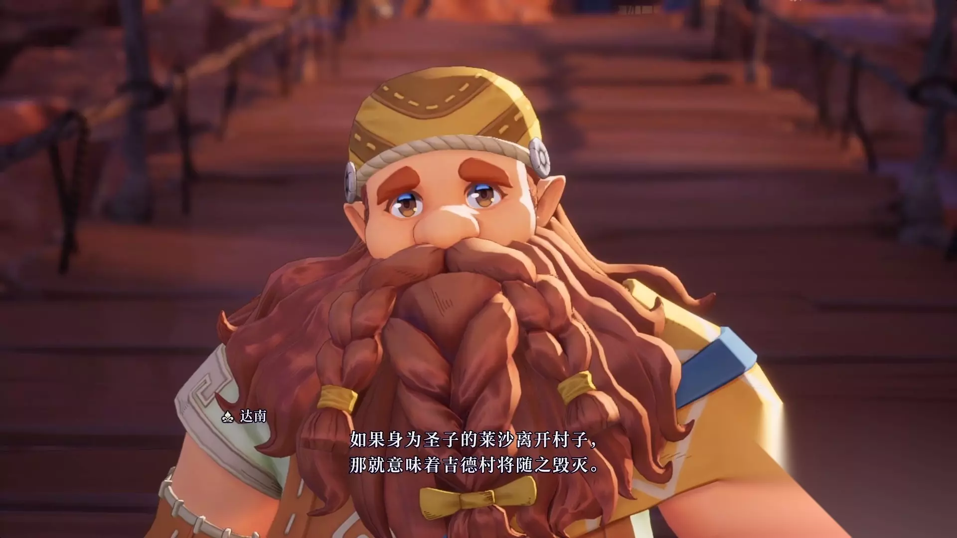 在桥上会和一个名叫达南的人进行对话(看着像村长),他会告诉主角逃离村子以后的后果。