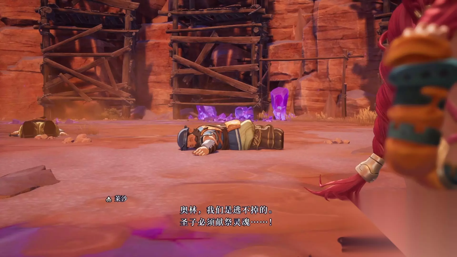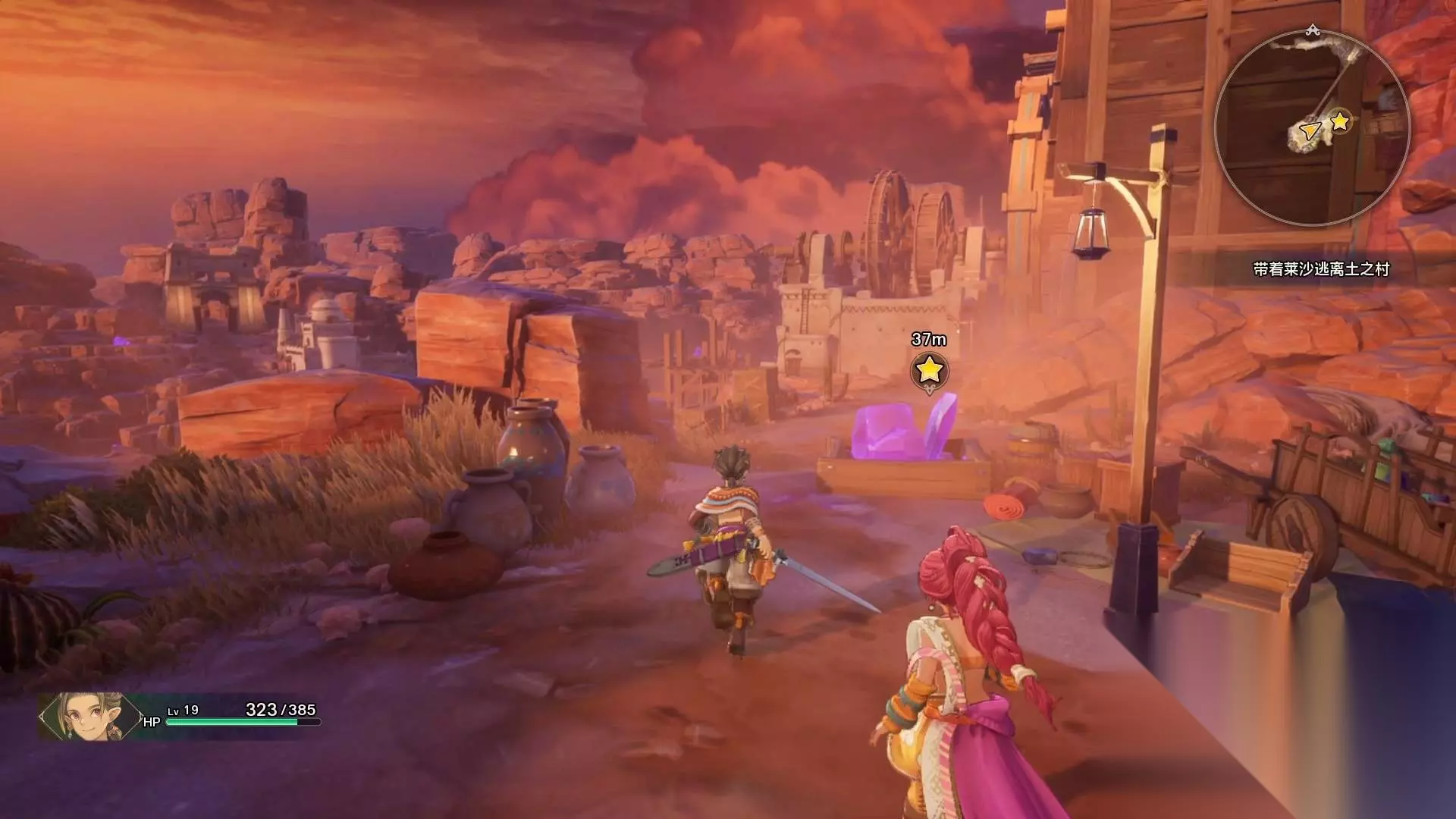 剧情结束,下面玩家就可以自由操纵男主了,需要男主带着莱莎逃离土之村。