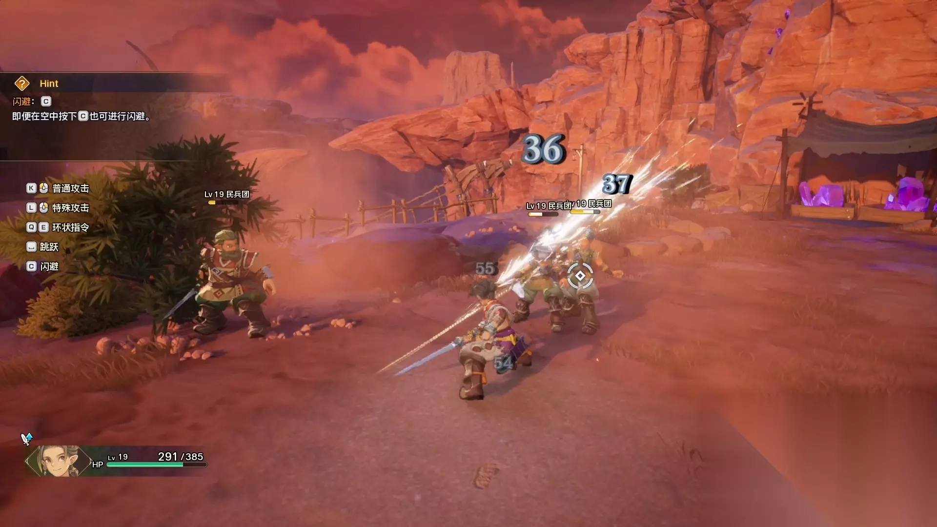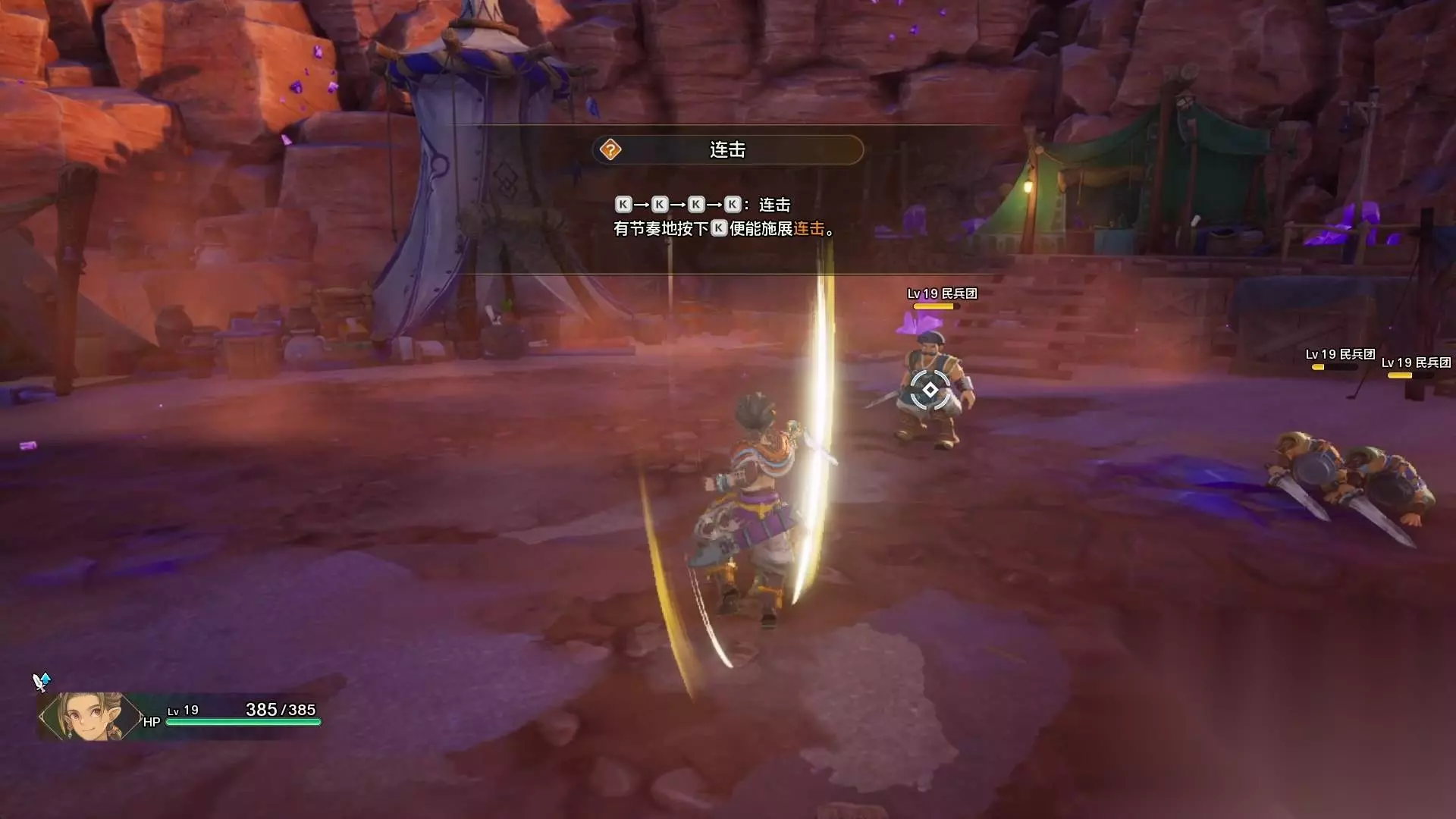 连击需要玩家有节奏的点击k键或者鼠标左键,便能施展连击。 战斗没有什么难度,只是给玩家熟悉一下战斗系统。战斗结束后,玩家需要继续跟着目标前进。