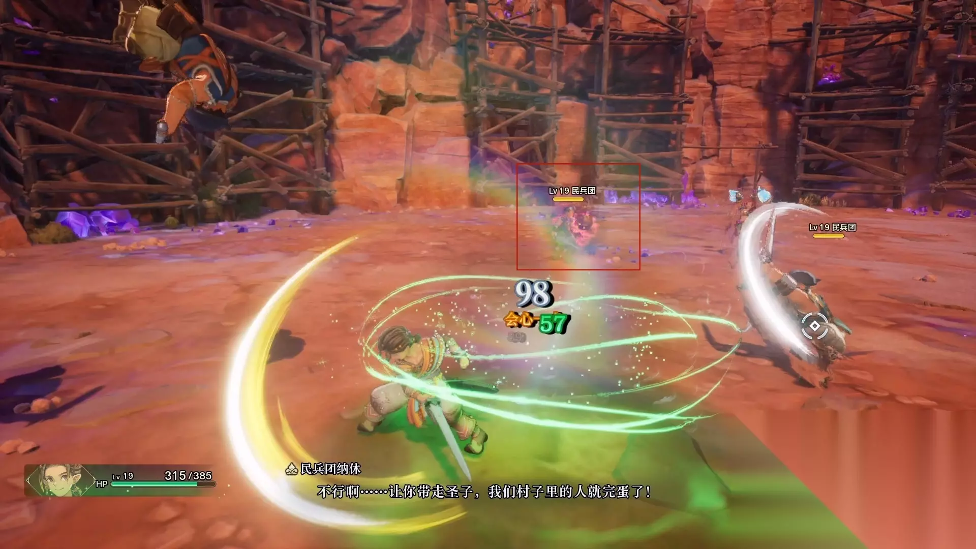 剧情过后,接着往前走一段路,会再次碰到民兵团,这里将会进入第二次战斗。