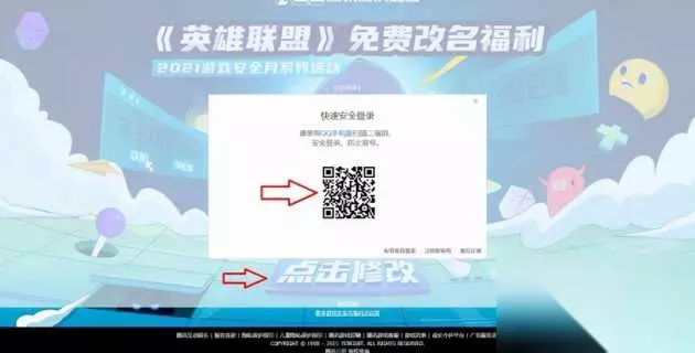 最后我们就可以进入到lol英雄联盟免费改名的活动页面当中了。点击【点击修改】按钮,然后登录自己游戏的QQ号,就可以修改游戏名字了。