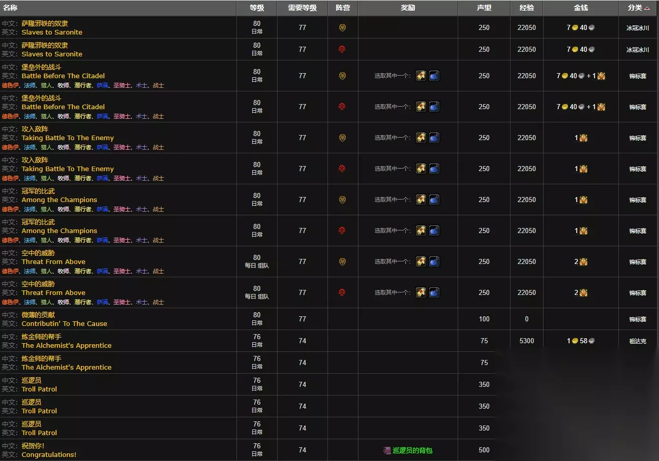 银色北伐军作为wlk版本总全新加入的一个声望势力,有很多的小伙伴都非常的好奇这个势力的声望要怎么刷,这里小编就为大家整理了银色北伐军这个势力的声望的详细的刷取方式,可以通过完成任务或是装备战袍刷本获得,感兴趣的小伙伴们快来看看吧。 魔兽世界wlk银色北伐军声望怎么刷 答:完成任务、装备战袍击杀怪物。 详细介绍: 一、完成任务 1、首先玩家需要完成祖达克和冰冠冰川的任务来刷取一定的声望。
