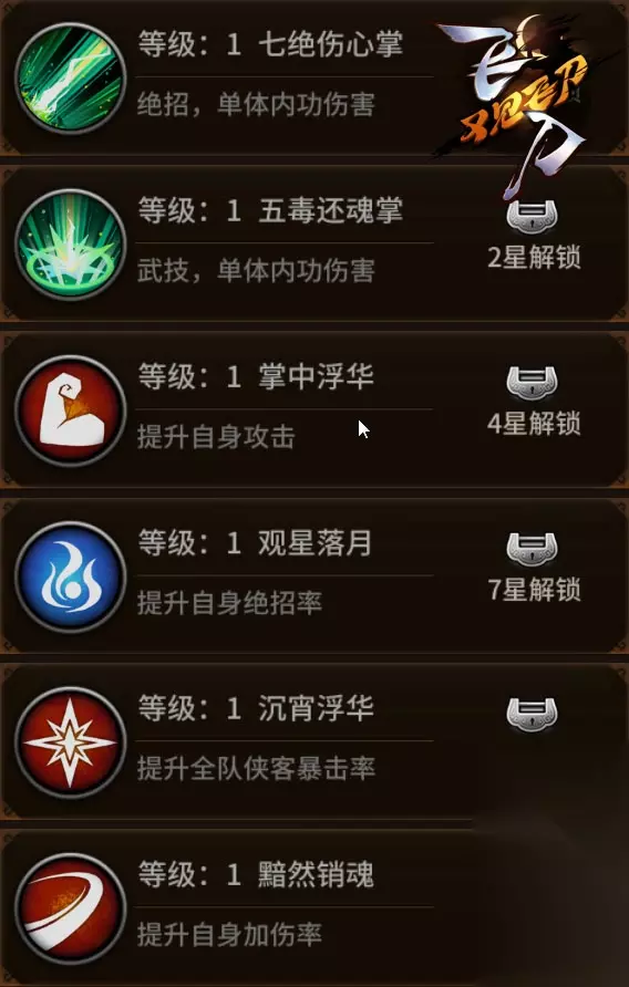 t15_2-t15_1:6.0 七断,即心脉断、血脉断、筋脉断、肝肠断、肾水断、骨骼断、腕脉断。七绝,即心绝、情绝、恩绝、欲绝、苦痛绝、生死绝、相思绝。可以说,这是一种伤极了人的心,人的情的武功。古龙正版授权、新派武侠卡牌手游《飞刀又见飞刀》主角李坏正是该武功的仅有传人。但此掌法因何而生,又是何人所创?在此将为玩家们一一道来。 七断七绝 一对金童玉女 七断七绝伤心掌的名字起于两个人,七绝公子与七断娘子。虽然名号很是威猛,但实际二人是江湖闻名遐迩的神仙眷侣。二人皆是李坏的好友,虽然李坏曾多次被陷害,身负污名,却始终得到二人的支持与信任。在李坏正名之后,“七断七绝”的侠名更是为人所称道。