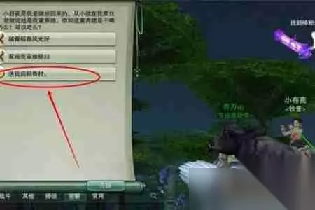4、与NPC小布高对话后选择“送我回稻香村”即可。