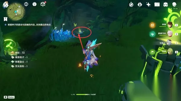 5.传送到化城郭七天神像,进入山洞,在小屋地下的蘑菇旁
