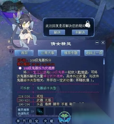 4、109级鬼武器消耗15个繁花似锦可分解280-420个绑定伏魂牌。