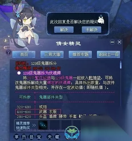 5、129级鬼武器可消耗21个繁花似锦分解400-600个绑定伏魂牌。