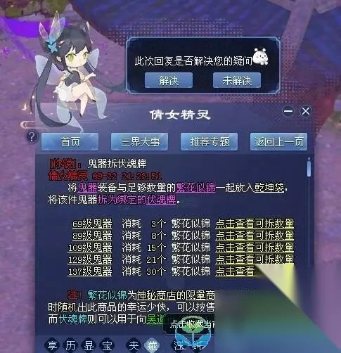 6、137级鬼武器可消耗30个繁花似锦分解571-854个绑定伏魂牌。