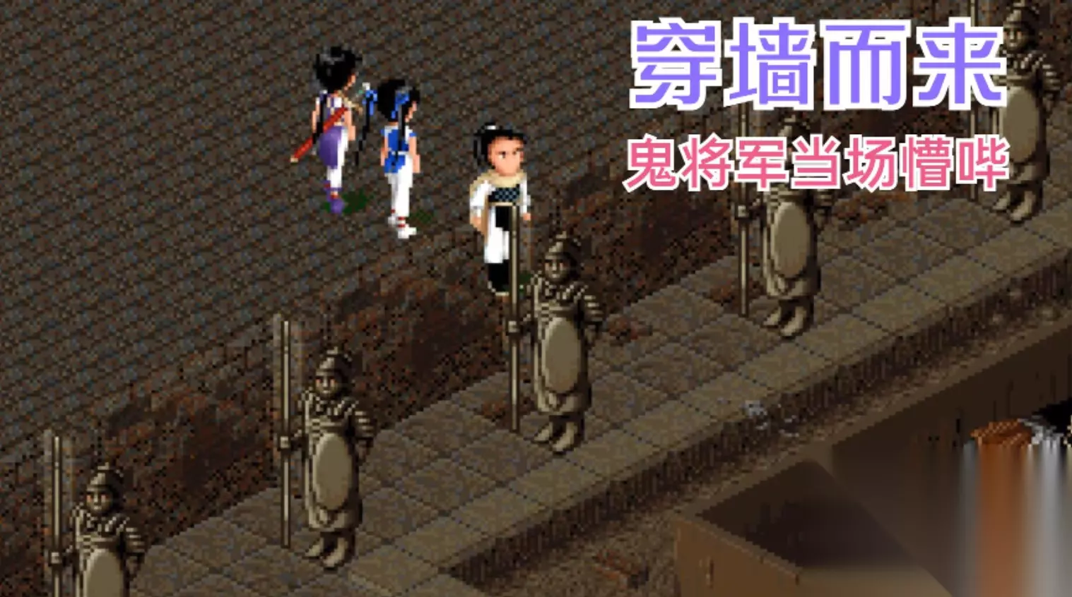 在其他场景中穿墙也很有趣。 我们可以直接穿过藏龙洞,进入大厅,而不需要杀死蛇妖人。也可以不拿到石钥匙就直接出去,这样就不用杀狐妖女,也不用与苏美结仇。
