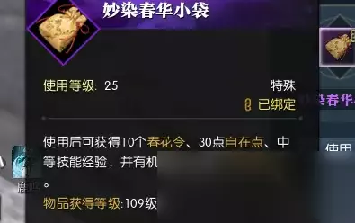 奖励:每日固定奖励【秒染春华小袋】