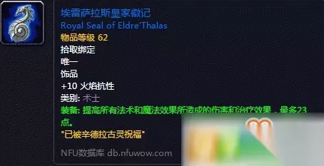 完成任务后将得到术士职业饰品:埃雷萨拉斯皇家徽记。