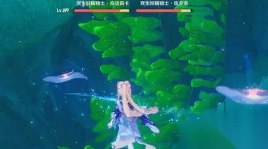 一、传奇猎刀鳐 1、双生妖精骑士、深谷之剑 要求:击败「双生妖精骑士」;击败「深谷之剑」; 奖励:10 原石 当猎刀鳐的【双生之恋】释放的一刻,使用【原海水刃】技能攻击连接点,重复五次即可消灭。