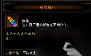 彩虹魔药 A2任何有"漫水小径"的进度,然后传送到"达尔格绿洲"。 有几率遇上一个穿着像刺客信条的NPC的男子,帮他打掉怪物后他会打开一个迷宫的入口,里面有可能出现彩虹魔药。