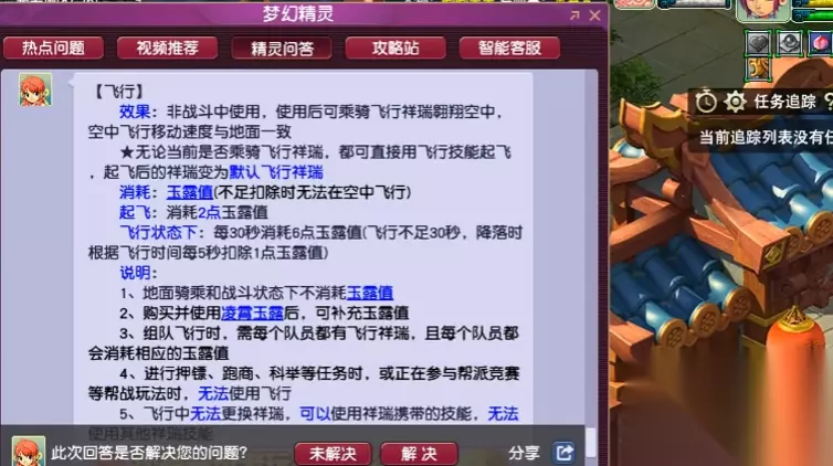 成功拥有飞行祥瑞后,让它起飞的关键道具是玉露。每次点击起飞按钮,都会固定消耗2点玉露值。进入飞行状态后,每30秒会持续消耗6点玉露值。不过你不用担心战斗时会浪费,因为在战斗状态下以及在地面正常骑乘时,都不会消耗玉露。玉露的补充很方便,游戏内有名为雨露的道具,一个雨露可以补充500点玉露值。关于飞行时的消耗策略,有一个高效技巧:在连续进行抓鬼等需要频繁移动的任务时,不建议在每场战斗前都特意降落,因为每次重新起飞都会额外消耗2点玉露,且起飞降落有动画会耽误时间。正确的做法是在任务路途中保持飞行状态,直接飞入战斗,这样可以节省总体时间和玉露消耗。