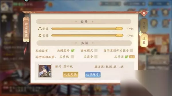 3、进入到玩家设置项后就会看到礼包兑换图标了