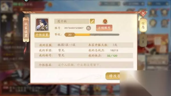 2、然后点击头像进入到玩家信息界面,点击右侧的设置按钮