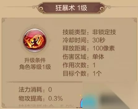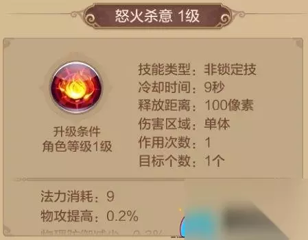 怒火杀意 32级解锁的技能,冷却时间9秒,为自身施加[怒火]状态,物理攻击提高,但物魔双防都会降低,持续5秒。 这个是战士的BUFF技能,PVE和PVP时必带的技能,其被动技能还可减少怒火杀意防御降低。 (二)绝技推荐