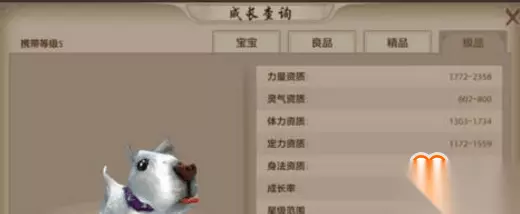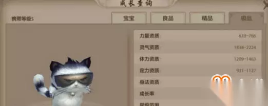 墨镜猫珍兽 【玄武岛珍兽】 狗:5级可以携带,外功力量型珍兽,玄武岛捕捉,很多任务的都需要。