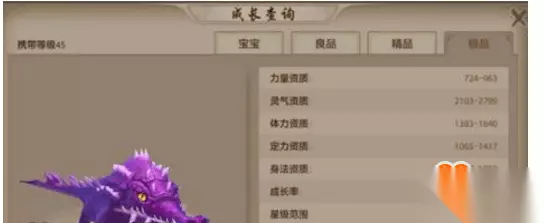 螳螂珍兽 鳄鱼:45级可以携带,玄武岛捕捉,内功型灵气珍兽。