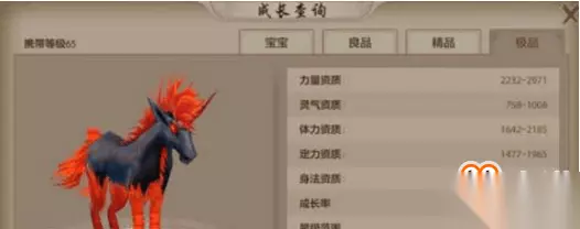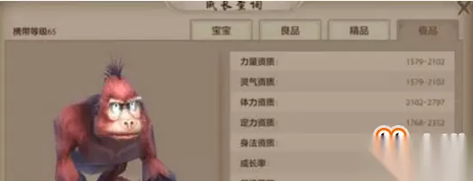 大猩猩珍兽 骄马:65级可以携带,玄武岛捕捉,外功型力量珍兽。