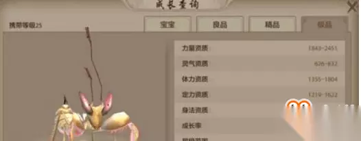 刺猬珍兽 螳螂:25级可以携带,玄武岛捕捉,外功型力量珍兽。