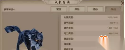 鹰珍兽 豹子:45级可以携带,玄武岛捕捉,外功型力量珍兽。