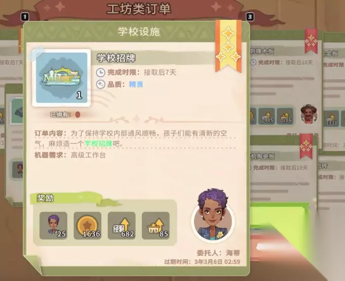 学校设施是一个连锁的任务,这个任务不少材料都不是那么难获得,这其中比较难搞的目标有两个,它们分别是招牌和空调,这两个物品都是需要精良以上才可以。招牌是需要刺槐木板2个,颜料4个和镁铝合金3个。空调则是需要使用图纸组装才可以。