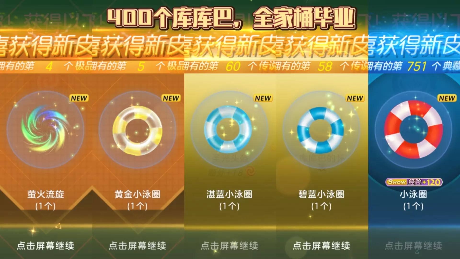 这是关于《球球大作战》的内容,讲解从库库巴的珍宝箱开出黄金泳圈的省箱子技巧,还展示了开箱子获得黄金小泳圈、南瓜鬼王等极品孢子皮肤的画面。